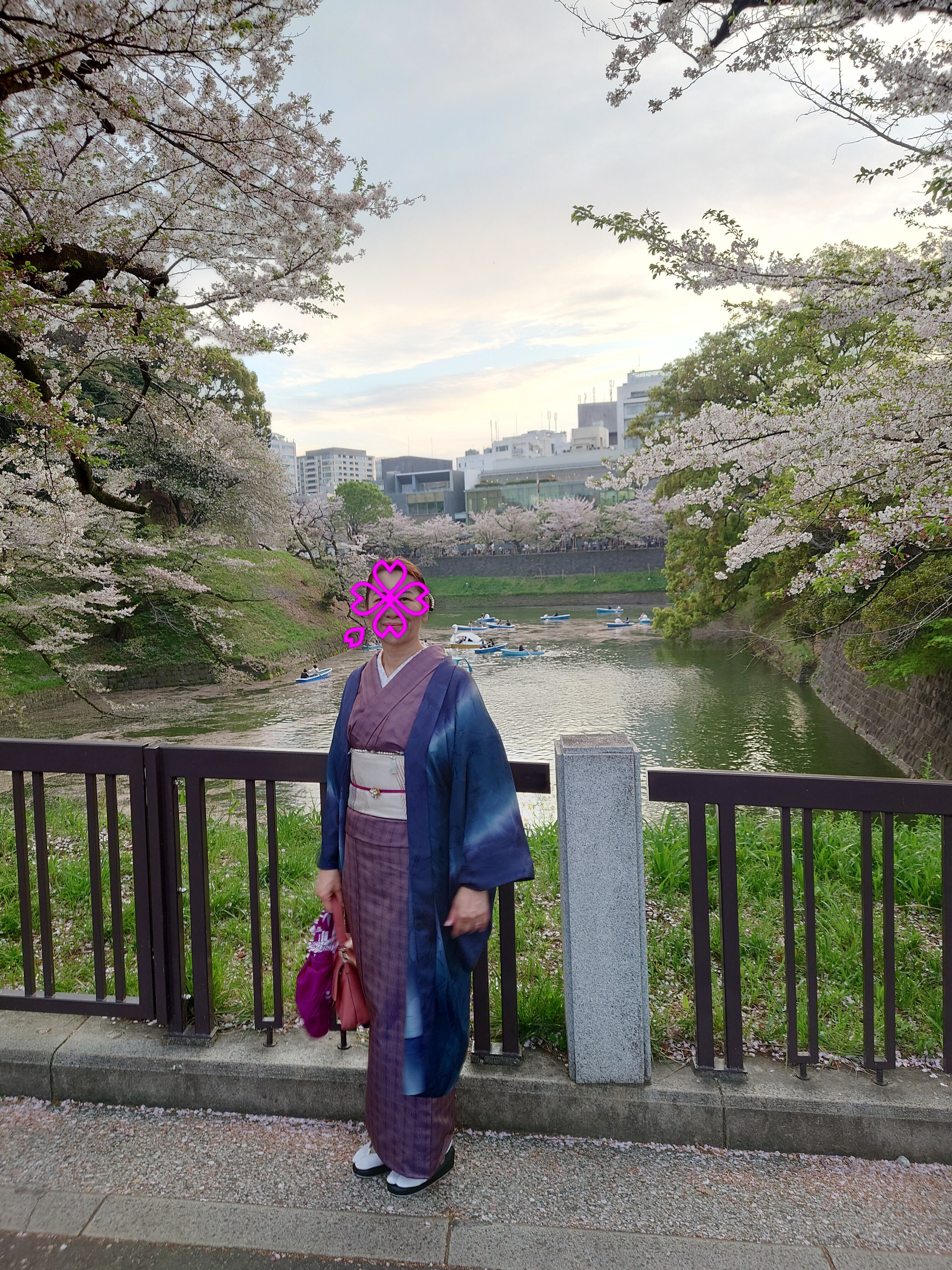 トップ > きものスナップ > 今月のトークテーマ > 夜桜能🌸 まろん 2026/04/08 12:24 夜桜能🌸 月曜日、蔵さんのおでかけ企画で靖国神社の夜桜能に行ってきました。 皆さんの日頃の行いが良かったらしくお天気も良く暖かくて、桜もまだまだ美しく、かがり火に照らされた能舞台と客席に時折桜吹雪が舞って、幽玄の美の世界に惹き込まれました🌸 能鑑賞は初めてで、にわか勉強で演目の「景清」が平家の落人の話だと知ったので、平家の家紋の蝶の柄を帯のたれに出して、(源氏側の)那須与一が射抜いた扇の帯留をしてみました🦋🪭 能鑑賞の前に千鳥ヶ淵でパシャリ👘🌸 春のおでかけフォト見せて 桜 夜桜能 靖国神社 千鳥ヶ淵 いいね コメントする 0 件の返信 (新着順)