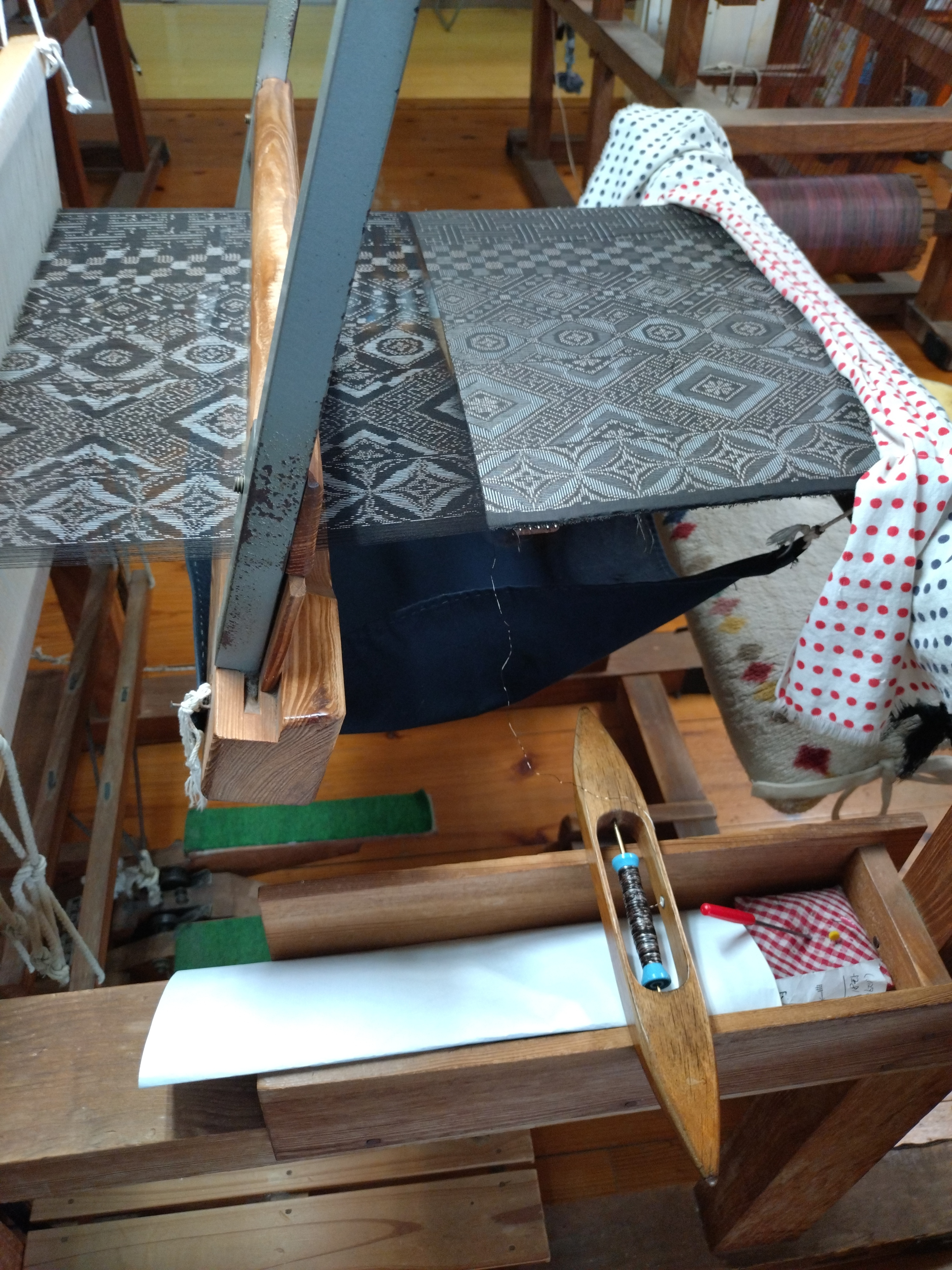 トップ > きものスナップ > その他 > 大島紬村に行って来ました RERI 2026/03/22 12:02 大島紬村に行って来ました 奄美大島に旅行に行き、大島紬村に行って参りました。 教室で教えていただいた、大島紬の製造過程を実際に見ることができて、感動✨しました。 本当に手がかかっていて、1反できるまでの時間が長く、大変な作業だと思いました。 織り子さんの収入は、出来高払いとお聞きし、伝統を引き継いでくださる方が少なくならなければいいな〜と思いました。 龍郷村があり、ここが龍郷柄の発祥地なんだ〜とテンションが上がってしまいました。龍郷市役所の壁?は龍郷柄でした。 いいね コメントする 0 件の返信 (新着順)