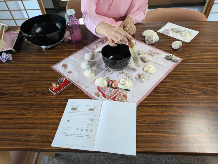 「貝合せ」に使う蛤貝は、ひとつひとつが自作です。貝を覆って遊ぶ仕草はシンプルながら、意外に奥が深いものがあります。歴史的な話や、作法、そして在り方に込められた意味など、お伝えしています🎎