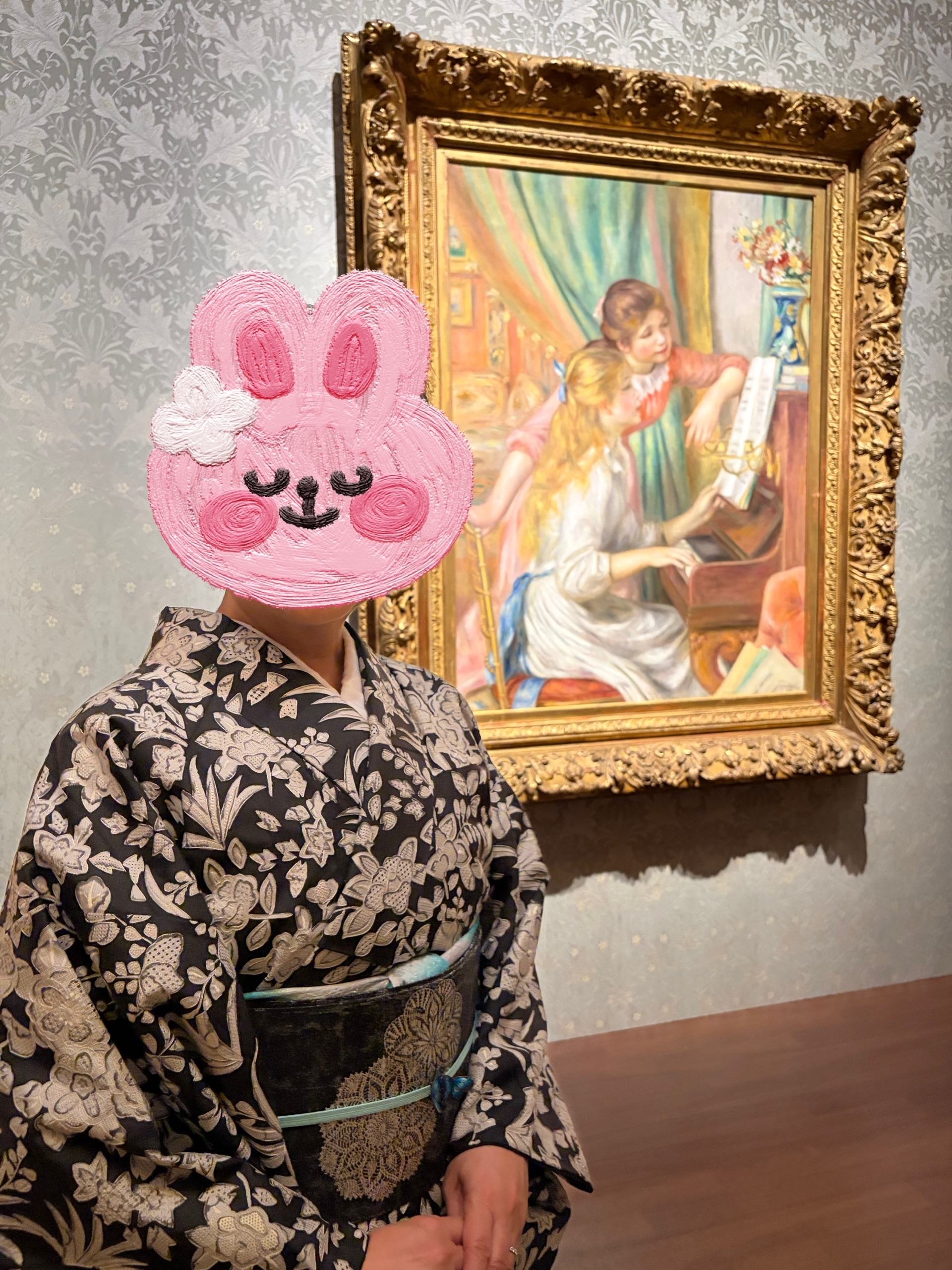 投稿を表示いつもながら素敵な装いですね~✨✨✨帯揚げ、帯締のブルーがお着物に利いていて、絵画の少女のブルーのリボンともマッチしていて、素敵な美術館コーデですね~🩷🩷🩷