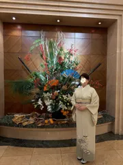 🎍新年会 新年会🪅1回目 当たりました🎯ディナーチケットこの前作った水引の髪飾りもつけてみたよ☺️