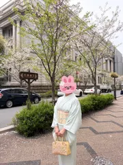 写真の撮り方がもはやプロ! 牡丹と桜の共演がキレイですね。 着物の名前は初めて聞きました。 綺麗なピンク、薄紫系色合いの着物に水色の紅型のコーディネートが見事で、見惚れてしまいます。 色の共演の組み合わせに今回も勉強させていただきました。 欲を言うと紅型帯の後ろ姿も見たいです。次締めた時にはお願い