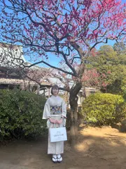 母の白大島 母の白大島を譲ってもらったので、お出かけに着てみました。蝶々の模様なので春限定ですが、とても気に入って着ていたようで、年季が入った感じになってます😂
