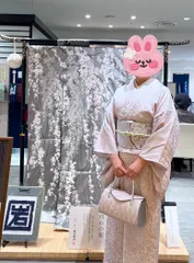 NEW 永治屋清左衛門展👘 永治屋清左衛門展👘✨ウィリアムモリス柳柄の着物桜と雪輪の帯🌸笹柄の帯揚立涌柄のバッグ👜永治屋づくしコーデでした💕