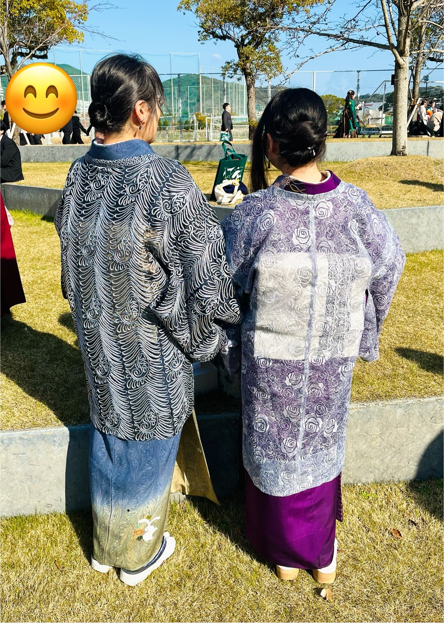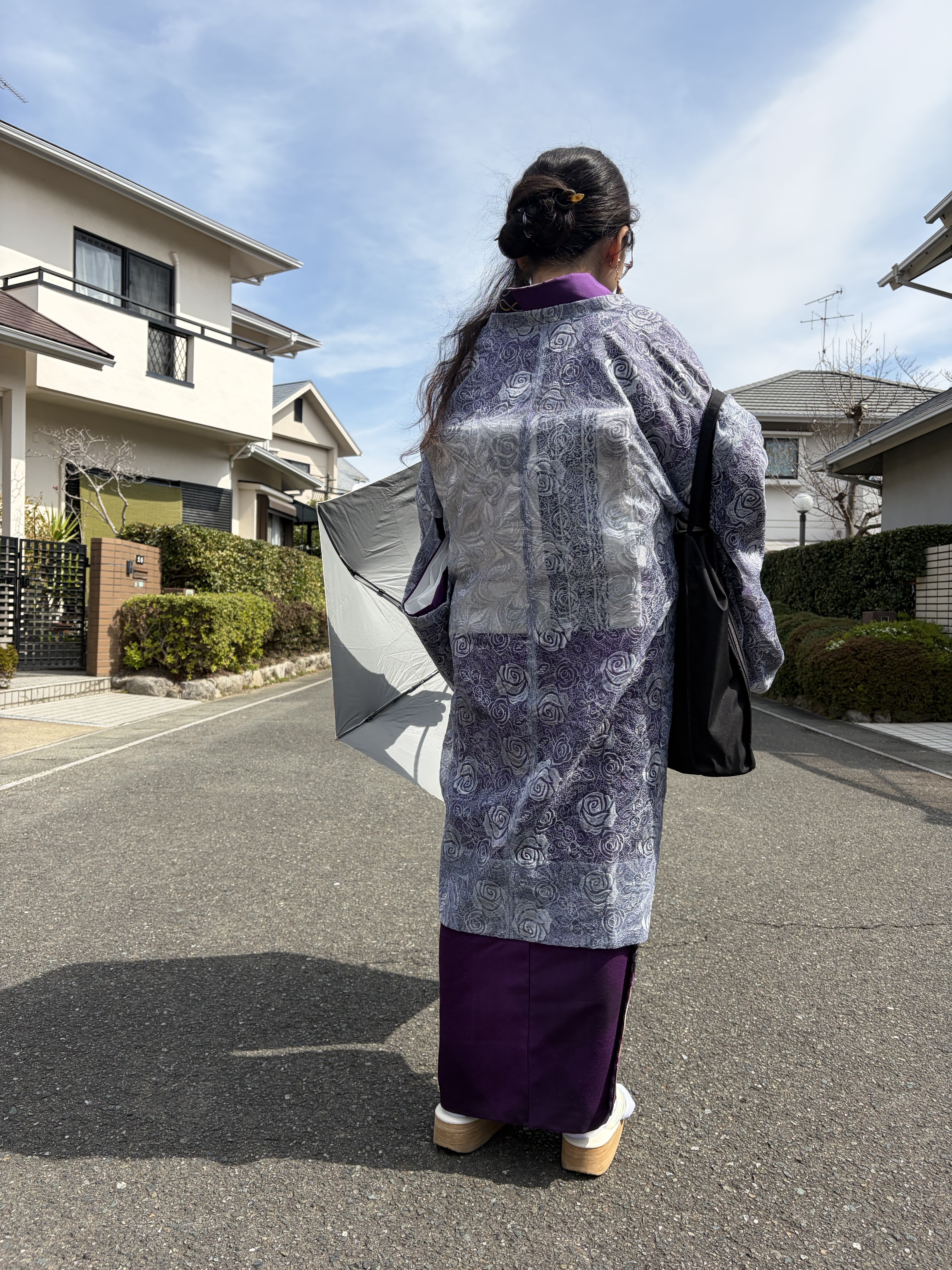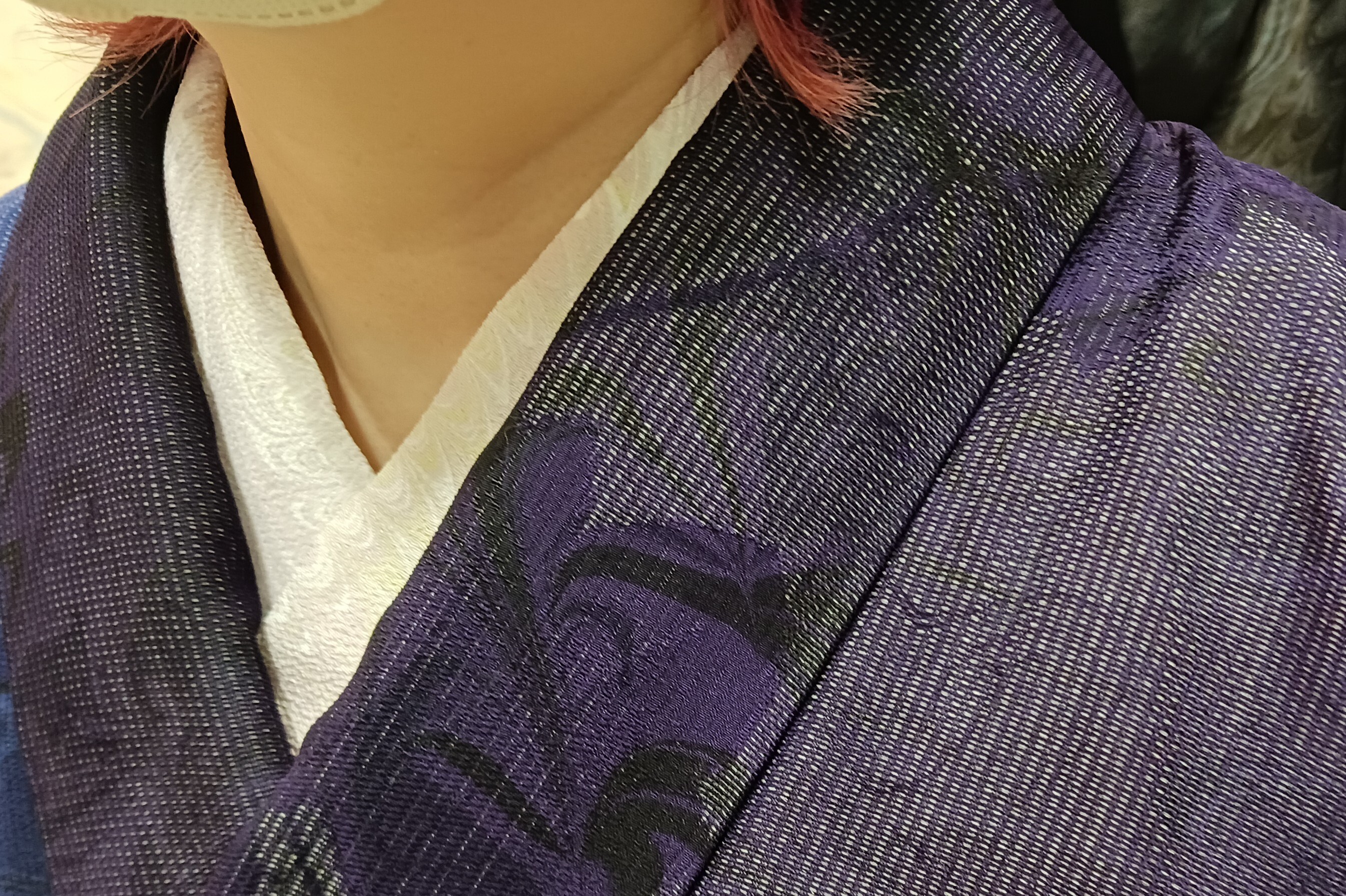 先の投稿の追記です。墨流しの道行が衣通姫もかくや、と思われる美しさだったので。白い帯に掛かる透け感も、分かりにくいですが濃い地の部分も素敵でした。新たな門出を着物を通じて応援していただきました。ありがとうございます。